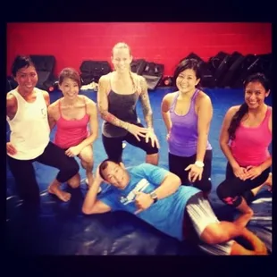 I went to the 8 am Saturday class at the original Manoa location. Please keep in mind that you need to bring water and a towel. I would even suggest a beach towel because the floor is padded for MMA training.Everyone seems to know each other really well. It's clear this is a close knit group. Mostly aunties were at this bootcamp, but boy they could kick my booty! If I was in a hunger games match, I would ally with them. We started with some stretching and balance moves before we moved on to the famous "box" plank. This was followed by a pushup circuit. I thought I was pretty strong in my pushups, but the padded floor forces you to focus on pushing up instead of back on the plyo pushups. You will be barefoot this entire time as well. One point for me for handling the one handed pushups woohoo!We spent the rest of the class partnered up. From box jumps to resistance band moves, you relied on your partner heavily throughout the remainder of the class. It really adds a sense of camaraderie among the students. At the end you clean up the mat because we sweat all over that place. It's such a different take on the bootcamp concept, but I will return for my "auntie" butt kicking next week.