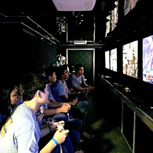Hawaii Game Truck has 5 55" inch TVs inside all connected to all the latest game systems xbox 360, Xbox One, Wii, PS3, and PS4