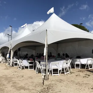 We attended a wedding at the Waikiki Aquarium and Hawaii Special Events provided the tenting and lighting and it was SPECTACULAR!!! The tent was big enough to hold over 300 guests, a dance floor and the buffet line all under the tent. The bride & groom also had their own tented area (connected to the main tent) that had a clean backdrop and a BEAUTIFUL chandelier!! The lighting for the tent was perfect for the outdoor night wedding, white Christmas lights lined the edges of the tent and lighting throughout the top of the tent was provided. The lighting made the tent very bright and open (you could hardly tell that there were over 300 people under this huge tent). The lighting was also dimmed during the dancing. The tent was HUGE, well put together and very clean! Great job Hawaii Special Events, another great job!