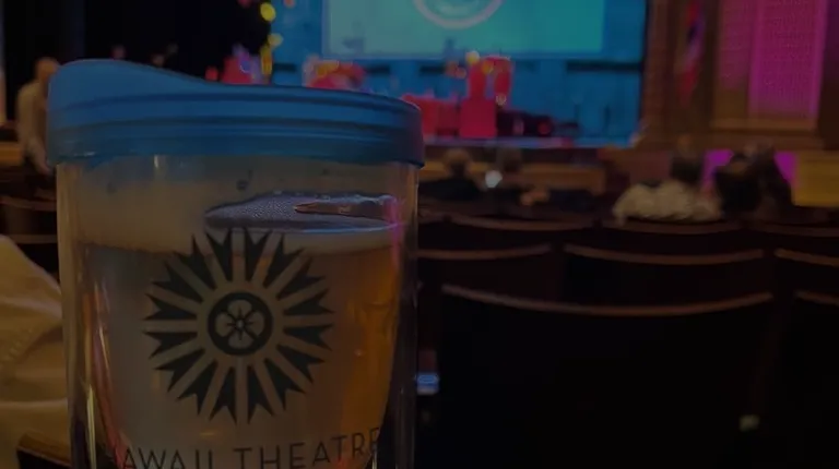 Trompe l'oeil mosaics adorn this cute little theatre that is located in Chinatown, urban Honolulu. It's a little sketchy in Chinatown at night, especially a lone female attending a show (none of my friends are theater or comedy buffs, oddly enough)...luckily, there is parking close by and everyone attending the show fills the streets, so you feel safe(r). Parking can range from $9+ for a typical show depending on which lot you park in. The theater itself is clean and easy to navigate. I've always enjoyed shows here, except one star knocked off because it's hard to hear in the upper balcony (not just me, I've heard a couple people next to me say "what did they say" in different shows). The bouncers are always nice, same with the bartending staff, and ushers who are plentiful and helpful in finding your seat.I cannot comment on the food (which I think they offer more snack-type items) but just keep in mind that you cannot BYOD/BYOF, so plan ahead. Maybe come a bit earlier and have some JJ Dolans or the AC hotel for some pre-show foods.