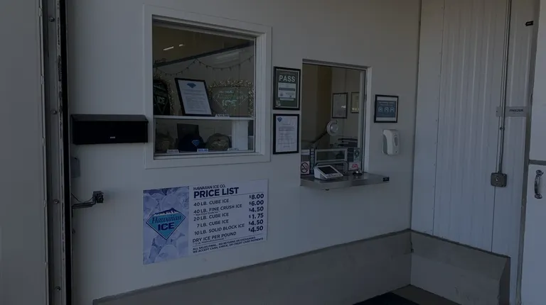 One of those modern conveniences we value most living in a hot climate is ice. We would never be able to keep up making it ourselves, so we always buy bags of Hawaiian Ice from 7-Eleven or Foodland. The ice is super clean with a great taste, plus prices are reasonable and we know our money is going to a local company.Running errands one weekday morning recently, I stopped at Nico's Pier 38 for poke and worried about it getting warm. I thought I'd finally check out the factory and store of Hawaiian Ice and am so glad I did. Also located on Pier 38, they have plenty of parking for the company store; you can see where their delivery trucks also load. The entrance is a garage window, with a simple menu on the way. The prices here are cheaper, plus they offer bulk sizes and dry ice you can't get anywhere else. The clerk at the window was friendly to answer all my questions and ring me up; another employee quickly came out to offer assistance for loading, which would be a great option for people buying a lot. I definitely look forward to getting ice here.
