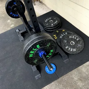 Power rack and plate storage with Black Bumper Set