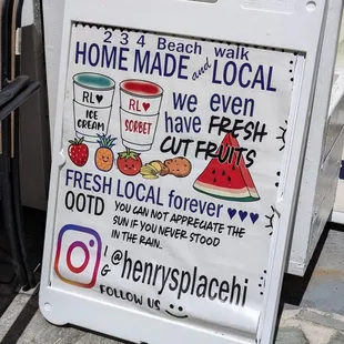 Henry's Place is a hidden gem for dessert lovers, offering house-made ice cream and sherbet that's bursting with fresh, natural flavors. The ice cream is perfectly balanced--not overly sweet--allowing the quality of the ingredients to shine through. Despite its tiny and unassuming setup, the freezers are packed with a variety of flavors, showcasing their dedication to quality and selection. The popularity is evident, as they were nearly sold out when we visited in the evening. If you're looking for a no-frills spot with exceptional frozen treats, Henry's Place is definitely worth a visit.So...forget the shave ice and come to Henry's!!