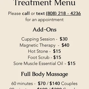 After massage seating live room free tea and water , please call or text 808-218-4236 , Mahalo !