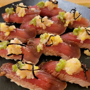 Best way I can explain this experience is if this was like an ALL-STAR baseball game. Every batter coming to the plate (every plate of sushi) is a beast. You don't wanna walk any of them cause the next guy up is a monster too. And you would think that you got through the heart of line up after the 4th or 5th batter but then Mike trout just steps up to the plate and behind him is Bryce Harper and Fernando tatis. I only wish it was like baseball so that when you get through the line up you can do it all over again It's a crescendo of anticipation and non stop hit after hit after hit experience. Thank you Hiro & Elizabeth!
