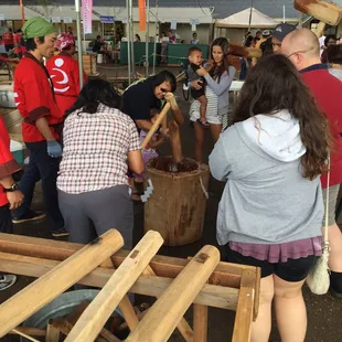 I almost dont want to write this review because this is a really great event and at the moment it is not super extremely crowded but I think it deserves MANY stars.My family hasn't pounded mochi in about 35 years and I wanted to have my daughter experience it. I wasn't really expecting much from this event. My friend invited us to go to it and I was hesitant but somewhat excited to go since it has been a while since I saw or pounded mochi.Met my sister and her family and decided that we would pound together. 10 dollars and about a 2 hour wait (eating ono food and looking at the open market) later we were pounding mochi. It was pretty amazing to have that many people able to pound mochi (100 families). And it went pretty smoothly too. There was about 5 usu going at the same time and it was a sight to see. From smashing the rice all the way to pounding and shaping the balls (haha), it was really amazing.I would say go early, before the 9am opening.But wait, like all YELP reviews I gotta talk about the food!Yaki Mochi - 2$ (yes, 2 dollars) - big piece of mochi and nori! WIN!Sweet Red Bean Mochi - 2$ - again, lots of sweet red azuki beans and huge mochi! WIN againOden - 5$ - 3 piece soft beef, egg, 3 daikon, konyakku, etc... oh man, this one was a super win.Chicken Yakitori - 2 for 5$ - my daughter inhaled them and loved it. Must have been good. There was also other food choices that I didn't try but all of the things we tried were GREAT! Bathrooms were plentiful and the parking on the grass was availiable. Pounding the mochi with my family really was a bonding experience. I loved it and it really brought me back to a simpler time of family, friends, and togetherness.LOTS and LOTS of props to the Honbushin Church for offeing this to the public. I will be coming back every year if at all possible. Hope to see you all there! Ok, wait, not ALL of you. haha! Happy NEW Year!