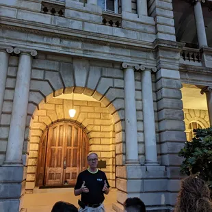 Getting there early waiting for my tour guide Maggie I had the opportunity to stand in front of the statue of king Kamehameha looking at the palace behind me. It was a nice calm before taking the tour. Not knowing I was near a few hotspots for supernatural activity. Ignorance is bliss in my tour guide. Maggie shows up with this energy of excitement, wearing a smile on her face. My initial thought was she is super excited to be scaring some people, but come to find out. Maggie is a schoolteacher that loves telling stories, and it shows she's amazing at setting the scene telling a story, her excitement and love her history make me excited and wanting to learn more. The tour itself was very interesting. I'm not sure if I believe in supernatural things, but the tour made me curious and want to do my own research at one point we were walking by a building, and I thought I was suffering from a hangover from the previous night of the bar crawl so I was feeling nauseous and as we were walking and went away the tour guy Maggie was surprised that none of us threw up at that spot because she said most people get really nauseous standing at that building because of the energy . Imagine, sitting around a campfire telling ghost stories with someone who loves telling stories, and the stories are actually historical facts.