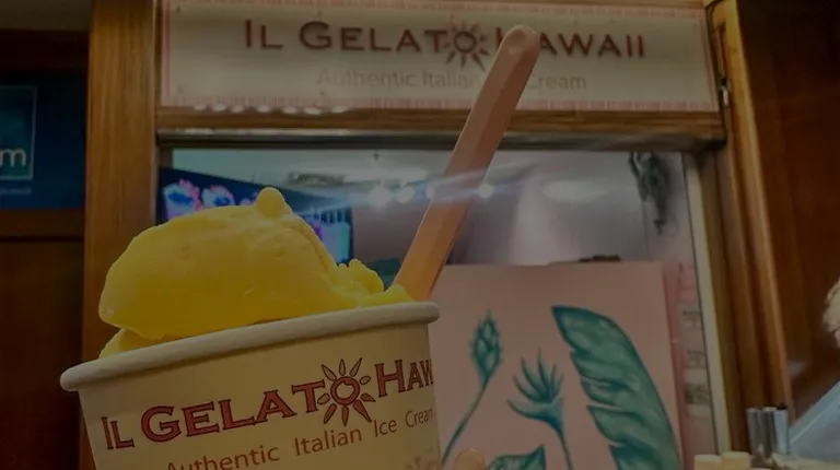 Kona coffee gelato is awesome. Their waffle cone is really good too. Located inside the international market place food hall. I tried macadamia nut which was also very delicious. Raspberry chocolate was also delicious. So was passionfruit.