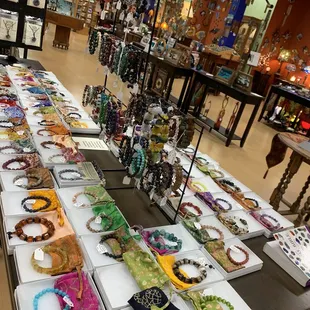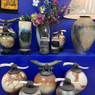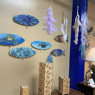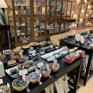 Lots of varied items to choose from. Jeff Chang ceramics as wellas crystals, jewelry, ornaments, wall art, games....