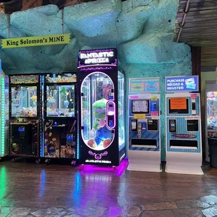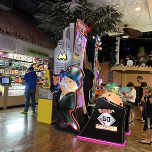 My son and nephew love this place. Call me an old man... but in my day we went to the arcade and developed skillz so we would get hours (ok maybe 10 to 20 minutes) of entertainment on a quarter. Now you get a card and swipe away on games of chance that lasts 5 seconds. I think Vegas funds these new arcades to condition our youth for a a future of gambling. Ok. Rant over. This is your typical modern day arcade. Charge your card up. Swipe on ticket games. Redeem for crap prizes. Why 3 stars - well kids like this place but it's nothing special as far as arcades go. They (and I guess myself included) like the wizard of Oz quarter slide game. There's something addicting to watching piles of quarters teetering on the edge. Pro tip - when picking where to waste your money check the bonus gauge on the machine - it goes up with each credit spent and then gives you a random amount of extra credits after it hits a level. If you're gonna waste your money might as well stretch it longer :)
