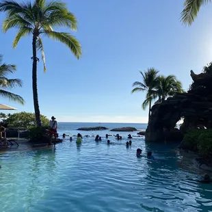 This is our favorite pool at Aulani! Grotto is super cool and the infinity edge looking out at the beach is gorgeous. If you go underwater, listen for whales and menehune giggles!