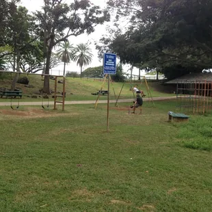 Beautiful day!!! This fall break we were on the hunt for playgrounds with swings and found one at Kamanele park. Pros: no batteries required, free, easy to find, shaded area for a peaceful picnic, no doggy pop, big beautiful trees, and the kids loved it. We even saw wild parrots!!! Cons: May be tough finding parking, may be muddy (the 2 swings close to the bathroom had puddles but the ones in the middle were fine)Me daughter noticed a decline in swings at playgrounds (park across Kalihi YMCA-gone, aweoweo park-gone) so we were fortunate to find joy at Kamanele park.