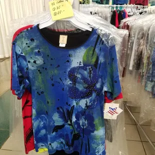 Clothing are sold at Douglas Trade Shows in Blaisdell Exhibition Hall a couple times a year. Booth number 71 is a good spot. Per Kay, prices at Trade Shows are same prices as her shop. Regular brands are JoStar, Cactus, and Korean brand of pants.I found new brand of shirts with great design for $35.00.