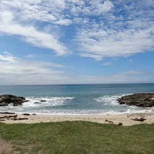 Stunning!!This was probably my favorite of all beaches in west side today. Not sure If it was because of the waves, the powder soft sand or the background. Or the fact that it was empty!! Perhaps all of the above!! Got here around 4 pm in the evening today and I almost stayed through the sunset!! The beach was stunning!! Major waves! Stunning backdrop. I was shocked to be the only one here but wow. What a view. I got pulled in a few times from just standing there but it didn't scare me enough! Such a stunning, secluded little spot! I didn't stop by the park facilities but if you walk up about five minutes, you'll get the best view and the best beach all to yourself!! It's beyond stunning!!