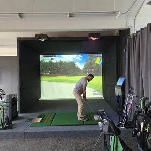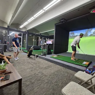 What an amazing sim!I've been here twice so far and love the technology of the simulator as well as how user friendly it is. Nothing is too complicated and the staff are there to help with anything you need and for recommendations. The ground lie changes angles depending on where your ball sits on the virtual course. There are different areas for hitting out of the rough, deep rough, fairway bunker, and green side bunker. What I really thought was nice compared to other sims I've been to is that Kahi (the staff) encouraged us to just get started on a course and instead of using time to explain all the buttons and the interface on the simulator first, he taught us as we went along so you truly feel like you make use of your time there. Other sims I have been to eat at your time by taking 10 minutes to explain everything first. Great for anytime golf, especially great for a rainy day.
