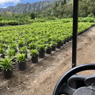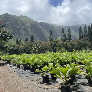 This nursery is deep in the country and that's how they do. When you arrive, you're not quite sure you're in the right place and when you walk up to the office, there's a chill cat laying on the desk with a calm and friendly guy to greet you. "Take cart 3", they say, and soon you find yourself driving around the 16 acres in a golf cart, throwing plants into the back and marveling at the backdrop of the ko'olau mountains. It is not fancy by any means, prepare to get muddy if it's rainy, but the plants are reasonably priced and go by size of the pot $5 for smallest pot and goes from there. The uncle running the place was so kind and offered to bring us boxes and help but we brought a tarp for the backseat and our plants made it home safely. A great adventure for the plant lover and off roading golf cart enthusiast.