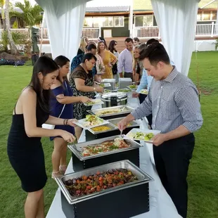 I met Kuoha Culinary some years back when I used him for a UYE to welcome one of our international Yelp friends and former CM. They are steady in their food preparation and the deliverance and presentation is above par.Sadly, I don't have any pictures of the delicious display of his creations but suffice to say, the taste was great, the meats were prepared to perfection and the sauces which accompanied the entrees were very delicious as well.I was a guest at a year end company party and didn't want to hold up the line by taking picturesSo reader! Use your imagination to a nice display of prime rib, sliced for individual service, 14/20 shrimp scampi style, roast chicken with a sweet hoisin sauce, truffle deviled egg appetizer, hamachi carpaccio and much more. If you are ever in need of a caterer, Kuoha is the one to contact!