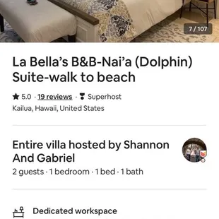 My husband and I stayed here for our first bed and breakfast experience. We were so impressed! This place is a great value, located in a very convenient location, and the hostess offers great hospitality along with valuable advice. Upon arrival, we were greeted by Misty and given a walk through of the beautiful and newly renovated unit. Misty then offered advice to help us plan our trip, and gave us recommendations for local eateries and hikes. For breakfast, we found a healthy selection of fruit, juice, pastries, yogurt, and bottled water waiting for us in the refrigerator. There were also many kinds of k-cup coffees and teas for us to choose from. The towels were fluffy, the bedding was comfortable, and the toiletries were quality organic products. We loved walking to the quiet Kailua beach and to the shopping plaza across the street for delicious poke bowls. We thoroughly enjoyed our stay and won't hesitate to recommend this B&B to friends and family.
