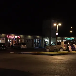 Costco..ramen ya..Starbucks..UPS store..fat boys..car service place all to name a few...parking can get crazy so be patient especially with all the crazies at Starbucks trying to get their caffeine fix.