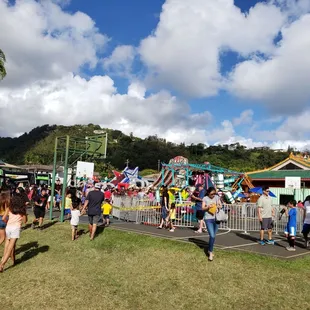 Since moving to upper-Liliha over 15 years ago, I pretty much have been coming to the Maemae School Family night every year. This one-day event is usually held sometime between late-April to early-May. Rain or shine I am here and still amazed of the community support for this event. Many alumni come here to support the school as well as the residents who live in this district. On the school ground this event has many games, rides, food booths, bake shop, country store, silent auction, face painting, school logo shop and more! Wait a minute, did I say food booths? One of my former classmates has been volunteering for the Family Night for many years now and she has been at the Spam musubi. This year they made over 1200 Spam musubis!!!!!! Holy Cow, that's a lot of Spam peeps! In the past I have volunteered at the Family Night for many years when my niece and nephew attended here but now that they have both graduated, I now come here to enjoy this event. The weather this year wasn't that great as it RAINED RAINED and RAINED pretty much all morning to the afternoon. Eventually it stopped so I came by at about 6pm to find muddy grounds! But it sure didn't keep the peeps away as there were many people in attendance.When you go late they have bargains and announced 50% off at the bake shop. I was tempted to buy some goodies but made a promise to myself and my personal trainer to eat in moderation so with my will power I passed on this great deal. Last year I was able to purchase produce and plants discounted heavily but also passed this year as there weren't many things left of my interest.For the silent auction there were a lot of gift certificates and cool items. I put a bid on an umbrella I really wanted only to lose to a very aggressive lady who ended up purchasing 4 of the 5 locally made umbrellas. There was one left and I almost bought it as the staff thought no one bid on it but come to find out it was won by fellow Yelper Ashley S.! Overall, this is a great event to support the school in my district and look forward to this every year.