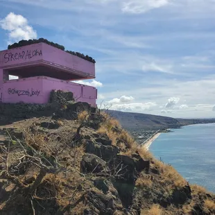 I picked this hike because of the hot pink pillbox at the top but good god, doing it in the late morning was not the best idea (though, judging by the others we ran into along the way, others had the same idea). The heat was oppressive and there's zero shade except for maybe two spots - and yes, I counted. There's also a steep drop-off along some parts so FYI, if you have vertigo or a fear of heights. All in all, it took us over an hour to complete. PROS: - The views at the top are insane and, IMO, make the hike worth it. You can clamber on top of the pillbox and go inside to peer out. I think there are a total of four pillboxes at the top but we only made it to two. - There's a very nice lady running a smoothie truck at the bottom. We rewarded ourselves with a mango smoothie that came in a quart. CONS:- Zero cover. You are pretty much exposed to the sun the whole way up and down. Bring lots of SPF and water. - The trail, despite not being muddy, was overgrown in some areas, with lots of loose rocks. As with any hiking trail, I recommend wearing good shoes, i.e., not sandals or flip-flops. Parking: The trailhead is along Kaukama Road, in the opposite direction of Farrington Highway, and easy to spot. Look for the smoothie truck.