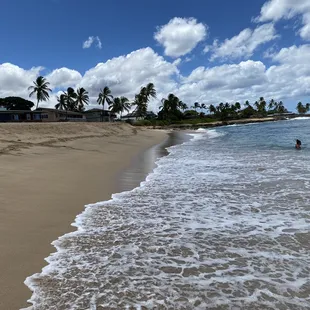 Located on the west side of Oahu, and I mean far west, this beach is a gem. The drive is worth it. Plenty of parking available just off the highway. The beach is a great place for kids and families. The kids love the waves and the clear water is refreshing for a nice swim. It's pretty sunny though and lacks shade but that's what tents and umbrellas are for. Plenty of space so you don't feel too crowded. It's a true local favorite beach. The view of the mountains and the ocean make this a great beach to spend the day at.