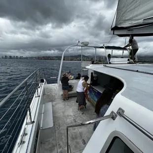 We went on both the Friday fireworks trip and the Sunday afternoon sail. We loved them both. The crew was very warm, welcoming and professional. I've been on other Waikiki catamarans, but this is the best. It's bigger and you load at the pier rather than having to wade aboard from the beach.