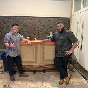 This is one of the best bartending services. They were very kind, friendly, professional and efficient. Every time I asked for something they will do there best to try and fit your needs. I was most impressed by the bar that was hand made by monkey pod wood. The bar fits to every occasion . Fundraisers, Weddings, Graduations, Birthdays, Funerals. You name it! Most of all they bartended for free for a school fundraiser and thats where I discovered them.Thank you Manuia for your services!