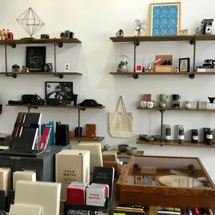 A nicely curated shop full of an eclectic mix of stationary, wallets, pens, paper and other home goods. The selection is primarily from Japan with some items from Germany, Spain and Italy. Browsing around you will find items that you didn't even know existed and after trying them out wonder how you lived without them before. For example a nice fountain pen and quality paper makes writing experience very pleasurable and much easier than a standard ball point pen. Gentleman working here is friendly and will answer any questions that you might have. This is a unique store and definitely fits in with the vibe or the surrounding store in building, such as the vintage clothing store, barber shop, record shop and Credit union. It is nice to see a unique and independent store.Be sure to check their website for the different brands that they offer. The store is organized much in the same way as the website. You can tell that the layout is definitely done by someone with an eye for clean design that is functional and follows the less is more motto,