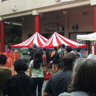 When I saw posters being put up for the very first 2-day Moon Festival celebration, I was so excited and looked forward to an evening of food and entertainment with some friends. Sad to say I didn't spend more than 20 minutes before walking away disappointed. I met up with a fellow Yeep and his sister here for dinner and a fun evening. Consensus was we were all shocked and disappointed. We didn't come to Chinatown to eat Panda's Chinese food, Olay Thai food or L&L's saimin burger or chili bowl. We had envisioned fresh noodles being cooked in a gas wok, piping HOT JIN DUI to munch on, bbq chicken and beef sticks......none to be found. Perhaps I had my hopes on a high level. For Chinese New Year's festivals held at the Chinese Cultural Plaza, there are many food booths, arts and crafts with some marketing here and there. Sadly, there were probably more marketing booths than food booths! There were several booths that offered moon cake. One even sold a small slice for $1 each piece. Walk several blocks down to buy a WHOLE moon cake for about $5. Sorry, I'm Chinese and play that stereotype well. Too expensive. During Moon Festival our family eats taro cake and dim sum. No booths sold this. On the brighter side, they had lemonade, Gelato and kettle corn. For entertainment there was an elderly gentleman who was "singing" and that didn't really appeal to the younger generation. With so many levels of disappointment we sadly walked away with empty stomachs. Just like myself, my friend's sister also had a lite lunch with the anticipation of a large, festive Chinese meal tonight. Parking entrance to the Chinese Cultural Plaza is on Maunakea Street for $3 or there is also a municipal parking lot directly across Beretania Street. Perhaps day#2 will be better with the moon cake eating contest? Will there be more food vendors? Not sure but I'm not willing to set aside time to check it out as day#1 was very sad.NOTE : We walked away very hungry and ended up at Happy Garden, where we satisfied our Chinese food craving for the evening.