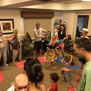 Christina has an amazing voice and her enthusiasm really makes the class fun! We have taken this class taught by different teachers when we lived on the East Coast. The concept is to expose your little one to music through spending 45 minutes singing, dancing and moving with your child and other families. The teachers lead the class through singing and encouraging parents to do the same. Even the worse singer...hahaha...me sounds good when blending your voice with a great lead. Christina quickly makes the group comfortable through singing the hello song and then switching song to song mixed in with movements with filmy scarves, instruments in bags, and lively dancing. The class is definitely upbeat and songs are very easy to learn. Even if you cannot carry a tune the class is a great way to start the morning and just sing! Not to mention it's very good family time!