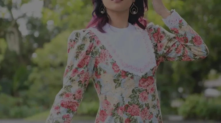 A stunning dress featuring kimono-style sleeves paired with vibrant Hawaiian prints.