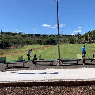 Been going to Newtown driving range for years. It's overpriced at $14 a bucket and I wrote about that before. However, now other places that are worse (like Ala Wai) have buckets at $14 so now we have to reset our expectations here. It's still one of the most expensive - Coral Creek, Kapolei are all $12 and automated - no need to go to a counter.But Newtown has fixed some of their problems:There is covering by the benches.The mats are better.There are spots to aim to.So all in all, still one of the better places to practice. The long lines are indications that this place is needed, despite the higher prices.One of the better (and only) places around Aiea.