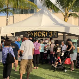 The noodle fest this year, 2019 was held at ward, next to the theaters, where the Christmas lights were held. This event showcases a taste of different restaurants serving saimin or Ramen noodles. There were many more vendors, but I only tried the below:Nori - 5 stars - for $6, there wasn't a very long line like some others, but I thought their cold ramen bowl was the best. The noodles had a flavorful shoyu based dressing with fish cake, onions and nori. They also sold pickled mustard cabbage in a jar and chocolate mochi cake.Santouka - 3 stars - for $6, they sold butter ramen only because they ran out of shrimp ramen before I arrived, which was only a half hour after the event started. The ramen was ok, but it's sun noodle. They had a display of different sun noodles which was interesting.Shige's - 4 stars - $7 for saimin, $5 for fried saimin - loved their homemade noodles which tasted so much better than regular sun noodles with a fresh chewy texture. However their broth and fried saimin was really salty.Burgers on bishop - 4 stars - for $11, 2 large pieces of soft teri pork belly with a lot of fat on ramen was very filling, but also very oily. They sold water in an aluminum reusable bottle, which was very useful. The person taking orders was very animated and funny.Yelp booth - of course 5 stars! Raelyn was very helpful and friendly in checking in, and giving me a choice of a cooler or eco bag.This event had long lines at certain tents and only within half hour after opening, some items were sold out. It was great to be able to buy a small servings of ramen or saimin at different restaurants.Parking - all around ward, but we decided to walk to the event after shopping at ala moana. I noticed they had a Lyft drop off area right next to the event.