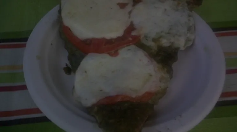 I was shopping at the Farmers Market in Haleiwa when I smelled something SOO delicious.. I just had to stop and see what it was..and what did I find.. some of the most delicious looking slices of pizza I have ever seen!I love pizza... so I just HAD to get one.. I was a little shocked when I learned ONE piece was $6.. but at that point I didn't care. my heart was set on this amazing looking pizza, and WOW.. was I one happy camper when my order was up! The slice was pretty big, and was covered in delicious pesto. It had huge slices of juicy tomatoes, and chucks of melty mozzarella cheese. The crust was perfect, not to thick, but not too thin, and chewy, yet crispy.. I was in heaven!I give the pizza itself two thumbs up, but the price, not so much.. Not that I didn't enjoy every bite of it.. but $6.. just didn't seem worth it to me.. I could understand paying maybe $4 for a slice.. It was good though.. and knowing me.. I probably will cave and buy it again next Sunday!They also had fried green tomatoes.. it was $5 for 3 thick slices..being from the South.. I'm ALL about some fried green tomatoes.. I may have to try those next time too!