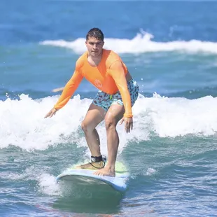 Our instructor Josh was amazing! He was fun, patient, considerate. I really appreciated that one of the 1st things I learned was what to do if struck by a big wave, which was so helpful during the rest of the lesson to be more confident and self-sufficient. He gave clear explanations and tailored his instructions individually (my husband was at a different level than I was). He's very analytical and was able to give great pointers to make small adjustments to my technique for notable rapid improvement. We had such a good time that we actually cancelled a different vacation plan to come back for a 2nd lesson and had just a good of a time the 2nd go around! Thank you Josh!