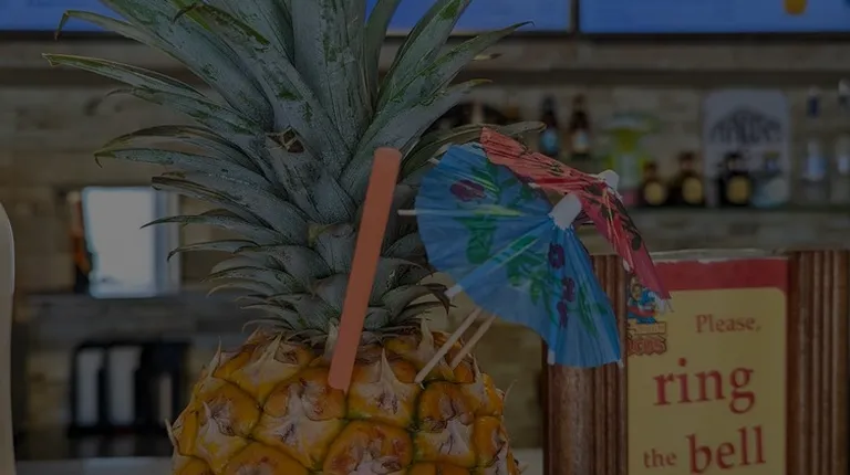 Menu, shrimp taco , pineapple tiki