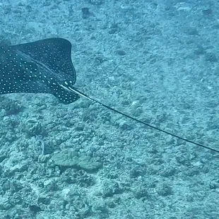 Great spot of a Spotted Eagle Ray circling Shark Tiger.