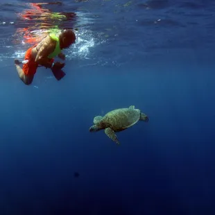 Snorkeling with a large , massive monk seal in the background
