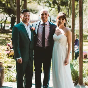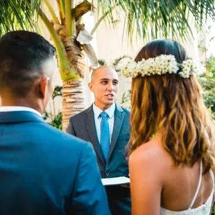 My husband and I decided that we were going completely non-traditional with our wedding ceremony. We met surfing, so we wanted a ceremony in the ocean sitting on our boards. Our friend heard what we wanted, and highly recommended Officiant Chris because of his flexibility and willingness to go above and beyond. When we contacted Chris, he responded immediately. We loved how enthusiastic and helpful he was. He was totally open to our ideas and wanted us to have whatever kind of ceremony we wanted. One of our goals was to have a stress-free ceremony, and Chris gave us exactly that. He was fun, he made us laugh and added just the right amount of sentimentality to make our ceremony special. Chris was professional and well-practiced, yet laid back enough to set us at ease. We highly recommend Officiant Chris! He will surely make your special day memorable in a way that no ordinary officiant would!