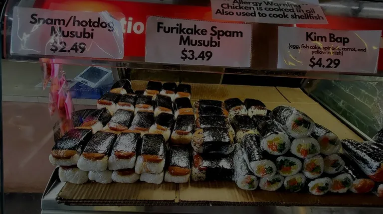 An unassuming spot for some delicious musubis and snacks. The line moves quick and the people come here for one reason; their hot and ready food in the display. We got a variety of items: Spam Musubi, Spicy Shrimp Roll, Kim Bap. The best one was the Kim Bap! Complex flavors, but simple fresh ingredients. The spicy shrimp roll was really good too! Perfect spot for a quick snack on the go