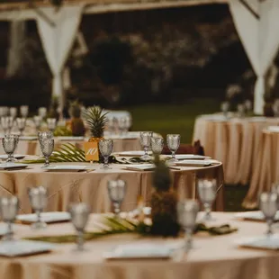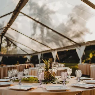 Unique table set up under a clear top tent