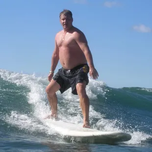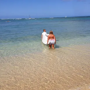 Yes, guilty, me and Thing 1 and Thing 2 did what every sunburned, lei-wearing pot bellied mainlander does when they come to Waikiki beach- we took surfing lessons. We took them from these guys and they were great. We had Mad Dog as our main instructor, and mad Dog looks exactly as his name suggests. After 25 minutes on the board on land getting to know how to hold it, stand up, paddle, turn and get down we are out on the water, paddling about 400 yards to get to the fabled breakers of Waikiki Beach. For $20 extra they will tow you out and if you are not in shape you should pay tyhe $, as yuo will be less tired when you get out there.Absolutely fabulous. One of their guys is also out there taking photos and for an extra $25 you get all the photos of you - and in an hour or so on the water pretty much everybosdy managed to get up ansd look half decent. I have to say Thing 1 and Thing 2 looked a lot better than half decent on some waves and enjoyed themselves immensely.
