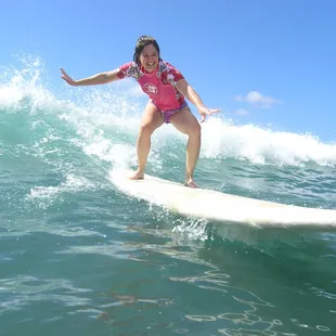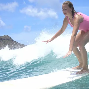 My daughter surfing on her first day