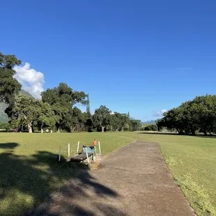 View heading up the paths towards the 4th green. You can the the Pali lookout in the distance.