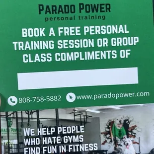 Parado Power is a great gym. I've been training here since 2021 and every workout is always a challenge. I'm constantly improving, getting better and stronger every time I complete a workout. I enjoy my workouts here because you never have to wait to use equipment (it's a private gym), the trainers set your equipment for you and tell you exactly what you need to do, and it's an overall friendly and non-judgemental place. I mostly do the personal training sessions but I've also done the group classes. The group classes are amazing. You get a great workout in these classes as well. If your schedule allows you to attend the group classes, I highly recommend them as well. The classes are smaller (12 people max) so you can improve and progress better than other fitness studios that might have too much people (20-30+) so the attention to you is very limited. Parado Power is great for a beginner wanting to start their fitness journey or even someone who is experienced but wants to take the next step and do more challenging workouts. No matter what level of fitness, you will progress like you never thought you could. Don't wait any longer!! Start or continue your fitness journey at Parado Power!