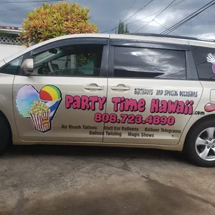 Baby lū'au's are expensive!! But Hawaii people always go broke for their babies. This time we were celebrating my brother's second child's 1st birthday, but that did not stop him from wanting to celwbrate with a bang! Lol.My husband and I offered to pay for a 'balloon guy' which led me to Party Time. Let me say that party services in Hawaii are pretty pricey!!! Other balloon artists or party companies I researched were ridiculously priced, making me re-think my 'calling' in life. Party Time was easy to contact thru Yelp, email, and on the phone. They even offered packages. So, we decided to add on glitter tattoos and paid $300 plus tax for 2 hours of balloon bending and glitter tattoos. The owner is very friendly and helpful. I must have driven himnuts, calling and texting him about different options. When we finally realized he was giving us the best deal, we locked it in. Here are some of the details:1) Ordered a package and was required to pay at least 50% of the bill, with the remainder to be paid at the party, in CASH. I paid $200 upfront and paid $105 at the party. That was MY choice. They have a Paypal option on their website, but I chose to pay over the phone because my Paypal account was giving me grief. An email of my receipt was received immediately after the purchase was made.2) The owner asked me to provide a table and chairs for the artists. Luckily, my dad was able to lend me some for the event. I also provided my own tablecloth and decorations to tie into the party's 'Pineapple' Theme. I wasn't sure this was something I SHOULD do...provide tables and chairs, but after reading thru other party sites, I found that this is a common request made by the companies.3) They were prompt. I like that. The owner dropped off the artists and they quickly got set up. I gave payment to the owner and left them to do their thing. Children quickly lined up for tattoos and balloons! The balloon artist was fun and he made some pretty cool stuff! I was already prepared to give him a solid telling off if all he made was swords and bananas. Lol. He did not disappoint! He made a very complicated looking monkey, pikachu, dolphins, and all sorts of cool shapes. The glitter artist used a template for the tattoos, which was completely fine with me. She was so sweet and accommodating. She was unflustered after being mobbed by little children. Lol. They seemed satisfied with their tattoos and that was all that mattered to me.4) They were supposed to stay for 2 hours. They stayed for 2.5. They were so kind to give the kids a little more time to get their stuff. I kept checking to see if they were ok and they were busy and on-task. I like that!The only reason they lost a star: When I placed my order I expected a form or a confirmation letter. I had to request one from the owner. I found put later that they always DID have a confirmation letter but it was sent out a couple days before the event. I wanted it after I PAID my deposit for peace of mind. The owner did not complain or give me any kind of attitude as I pestered him for this information. He was completely patient and accommodating. I highly recommend Party Time for the services mentioned. I was satisfied and happy to know that theirprices were reasonable. The owner is professional and friendly and the artists were great. They are not as 'flashy' as some of the other party companies you see online, but they still did a great job.Mahalo, Party Time!