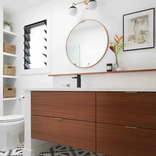 Custom bathroom vanity in white high gloss finish. Locally designed and manufactured in Kapolei, HI.