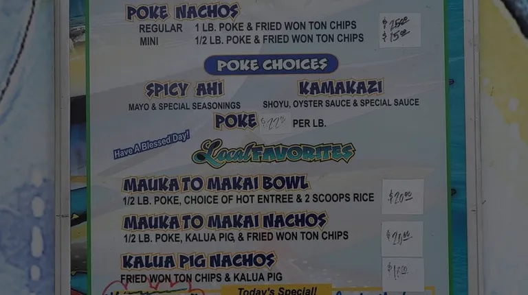 SUPPORT LOCAL GANGY!! IYKYK Yes, there is a storefront in Pearl City (not sure if they're affiliated) but it's not the same as Unko Wendell's food truck. Our go to is the poke nachos, half spicy/half kamikaze. They make their own wonton chips, cover that with 1lb of the freshest poke, then load the top with special sauces, drizzles, and garnishes. The lunchwagon comes out maybe every other day around after school hours (2pm until sold out) but I always go to their instagram @poke_on_da_run for updates. There is always a line so be prepared to wait and give a little extra patience as they are working hard to serve everybody. CASH ONLY so come prepared. And park only in designated areas to avoid getting a citation.