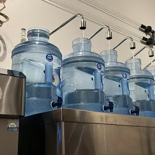 three large jugs of water